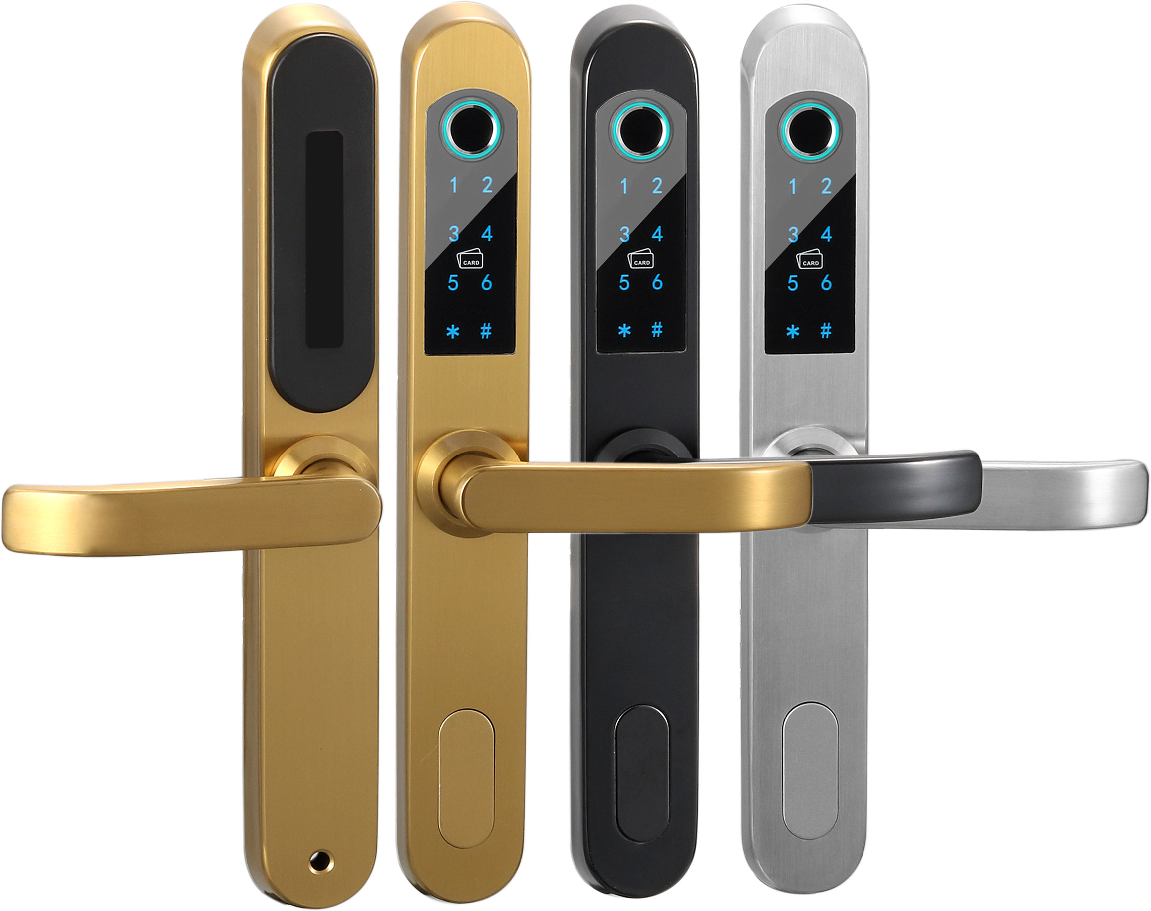 功能:指紋開鎖,密碼開鎖,卡片開鎖,機械鑰匙
