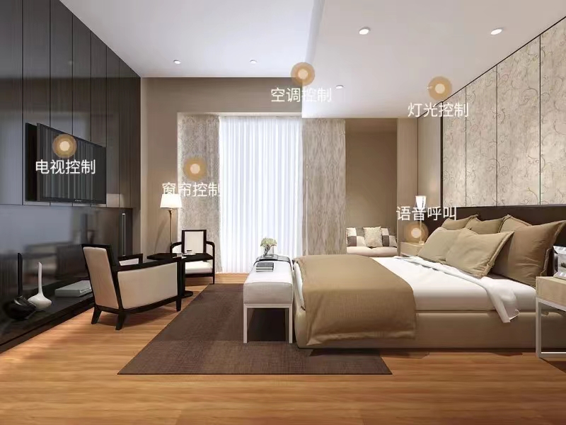 3、電動窗簾系統(tǒng)功能:窗簾的開關(guān)及暫停、配合自定義場景。 4、自定義場景系統(tǒng)功能:明亮模式、睡眠模式、浪漫模式、閱讀模式、晨起模式、夜起模式等,根據(jù)不同地域、不同的生活習慣、不同的酒店管理模式自定義配置。